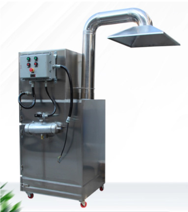 移動(dòng)式防爆除塵器工作原理是含塵氣體由吸風(fēng)口經(jīng)管道進(jìn)入靜壓室后,粉塵經(jīng)過濾芯過濾,首先氣流快速的降低和氣流方向的改變,使大顆粒的粉塵由于重力作用和慣性而直接沉降于集塵抽屜內(nèi),對于較輕、較細(xì)的粉塵則被阻留于濾筒壁,為防止堵塞濾筒,必須要對濾筒進(jìn)行清灰,采用智能定時(shí)脈沖閥,通過氣壓的反吹分別依次對濾筒進(jìn)行清灰,效果顯著,凈化后的清潔空氣通過離心風(fēng)機(jī)的作用經(jīng)出風(fēng)口排出箱體外,由出風(fēng)口排除的風(fēng)直接排入室內(nèi)(亦可接風(fēng)管排至室外)。